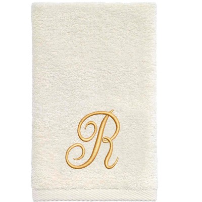 Avanti Ivory with Gold Script Monogram Hand Towel Letter A
