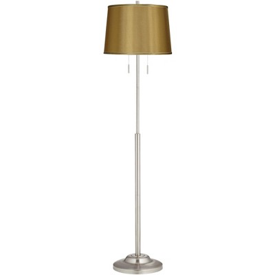 360 Lighting Abba Modern 65" Tall Standing Floor Lamp Skinny Pole Twin Pull Chain Silver Metal Brushed Steel Finish Living Room Drum Sydnee Gold Shade