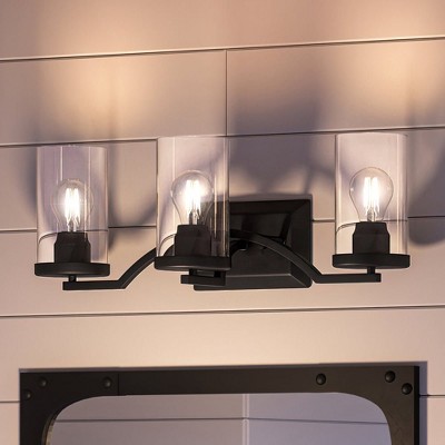 Progress Lighting Debut 3-Light Bath Vanity Fixture, Steel, Graphite, Clear Seeded Glass