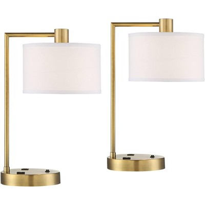 360 Lighting Neil 26" High Rectangular Rustic Modern Table Lamps Set of 2 USB Port Pull Chain Black Metal White Shade Living Room Charging Bedroom