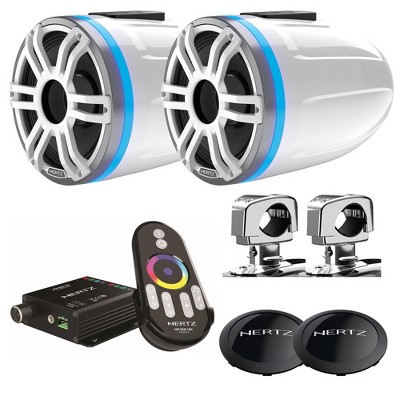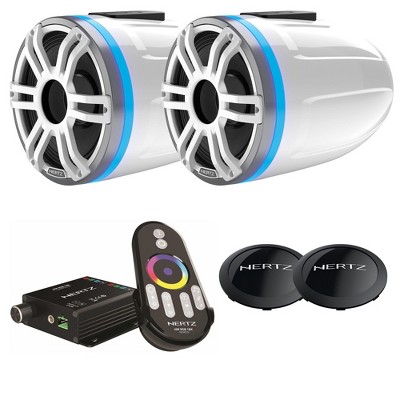 Hertz HTX 8H S-FL-SW Marine Tower Horn 8'' with White/Silver Sports Grille and Rear LED Lighted Logo with HTX Clamp 1 Optional Clamp and LED Contro...