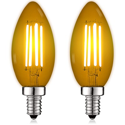 Luxrite E12 LED Filament Yellow Light Bulbs, 4.5W (40W Equivalent), Colored Glass Candelabra Bulb, UL Listed, E12 Base, Indoor Outdoor 2 Pack