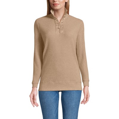 Lands' End Women's Long Sleeve Waffle Quarter Zip Pullover