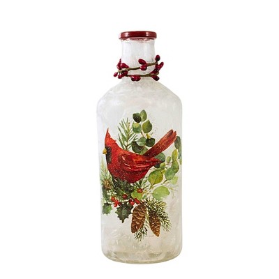 Stony Creek 7.75 In Pine Boughs & Birds Christmas Lighted Glass Accent , Christmas Decor Pre-Lit Vase Berries (1PC)