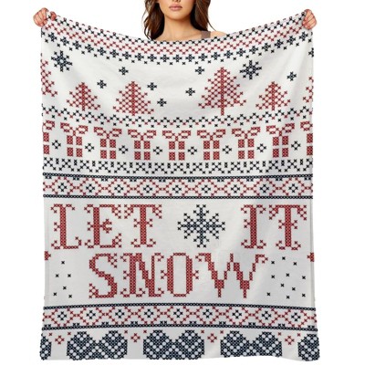 FIONECA Light Gray Christmas Wreath Ornament Pine Branch Pattern Elegant Throw Blanket Winter Holiday Decor 60x80 inches
