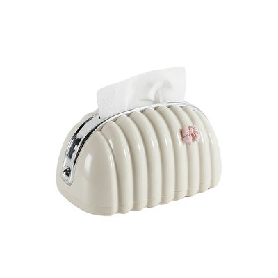 Alilang Ribbed Decorative Tissue Holder with Handle and Bow Accent - Light Beige