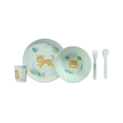 Kids' 2pc Bamboo and Melamine Dino Dinnerware Set Green - Pillowfort™