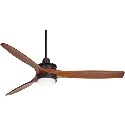 60" Casa Vieja Aero Matte Black and Koa LED Ceiling Fan with Remote