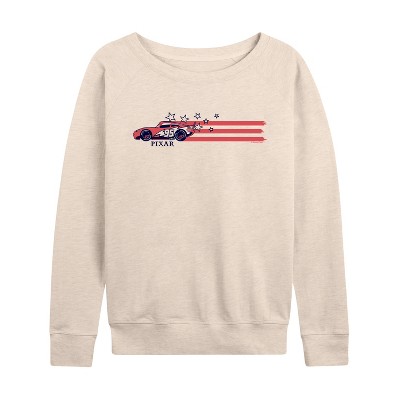 Women's - Cars - Lightning McQueen Stars and Stripes Lightweight French Terry Wide Neck Long Sleeve Graphic Shirt
