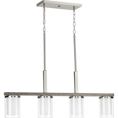 Progress Lighting Mast 4-Light Island Pendant, Brushed Nickel, Clear and Etched Glass Shades