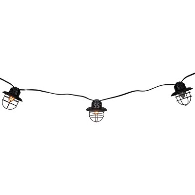 Northlight Northlight 10-Count Black Caged Fisherman Lantern Patio String Light Set – 9' Black Wire, Clear C7 Bulbs – Indoor/Outdoor Decorative