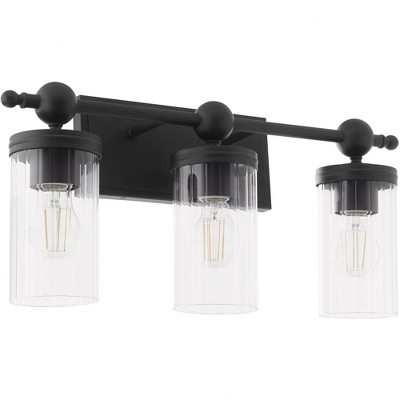 DORESshop 21 in. 3-Light Black Vanity Light with Clear Cylinder Glass Shades for Bathroom, Mirror, Powder Room