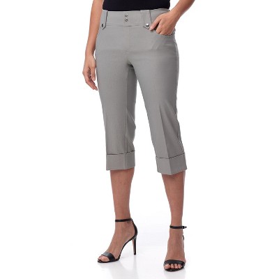 Rekucci Women's Pull-On Mid-Rise Straight-Leg Capri Pants with Button Hem Detail