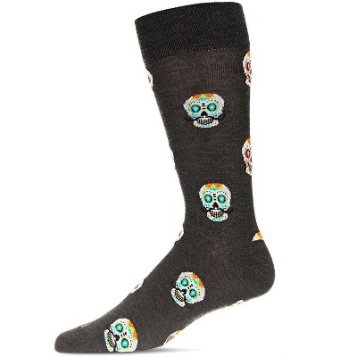 Memoi Men's Mustachioed Sugar Skull Bamboo Blend Crew Socks