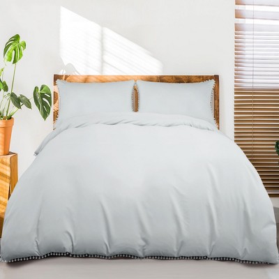 PiccoCasa 110gsm Brushed Microfiber Bedding Duvet Cover Set with Pompoms with 2 Pillowcase