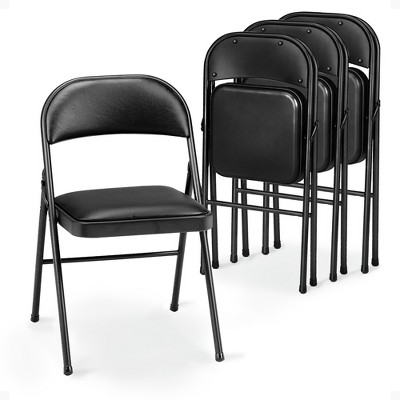 VINGLI Padded PU Folding Chairs with Thick Seat Cushion, Comfortable Foldable Chairs, Party, Dinning, Black, 4 Pack