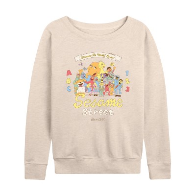 Women's - Star Wars - Yoda and friends Collegiate Lightweight French Terry Wide Neck Long Sleeve Graphic Shirt