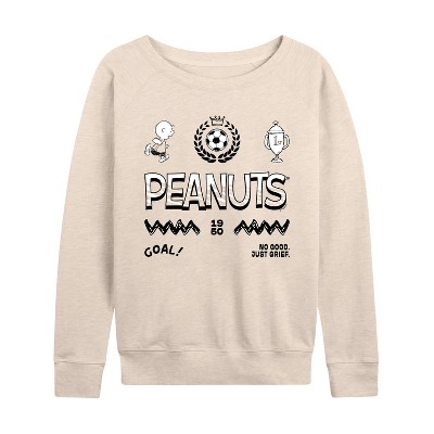 Women's Peanuts Charlie Brown Soccer Jersey Lightweight French Terry Wide Neck Long Sleeve Graphic Shirt - Birch - 4X