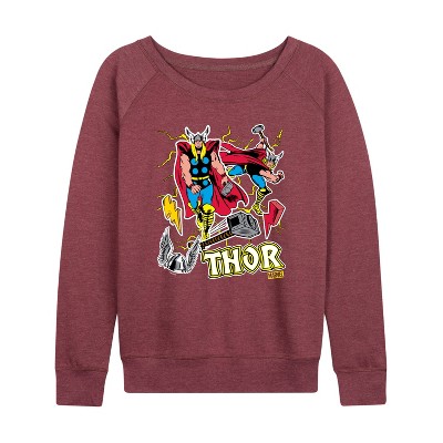 Women's - Marvel - Thor Stickers Style Lightweight French Terry Wide Neck Long Sleeve Graphic Shirt
