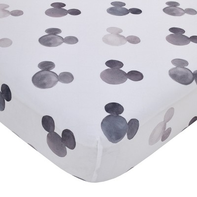 NoJo Disney Mickey Mouse - Black, White and Gray Watercolor Mickey Ears Nursery Fitted Crib Sheet