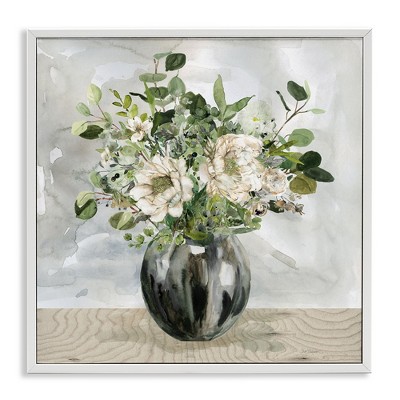 Stupell Industries Detailed Flower Arrangement Mixed Blooms Vase Bouquet Framed Giclee Art, White, 12" x 12"