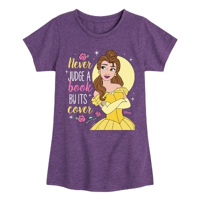 Girls' - Disney Princess - Belle Never Judge A Book By It's Cover Fitted Short Sleeve Graphic T-Shirt