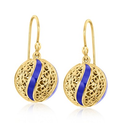 Ross-Simons Blue Enamel Filigree Ball Drop Earrings in 18kt Gold Over Sterling