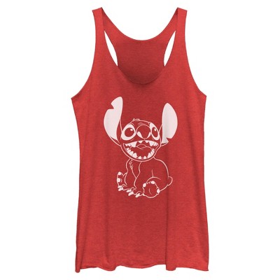 Juniors Womens Lilo & Stitch Tropical Flower Big Face Racerback Tank Top