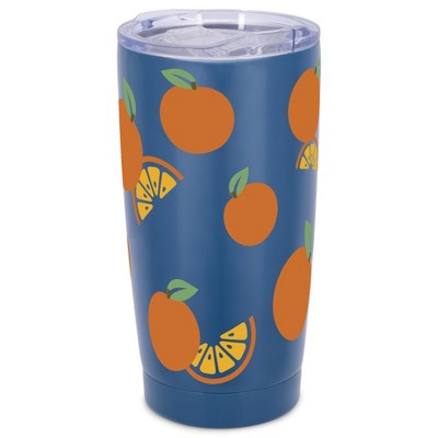 Elanze Designs 20 oz Stainless Steel On the Go Insulated Travel Tumbler With Push Top Lid, Citrus Orange Tangerine Pattern Blue