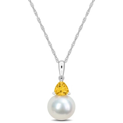 18K White Gold Faux Pearl Box Chain Pendant necklace