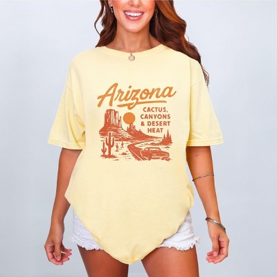 Arizona Cactus, Canyons & Desert Heat - Women's Garment Dyed Graphic T-Shirt