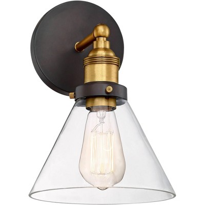 Possini Euro Design Ishii 9 1/4" High Modern Wall Sconce Light Lamp Fixture Mount Bathroom Bedroom Bedside Hardwired Cordless Matte Black Glass Shade