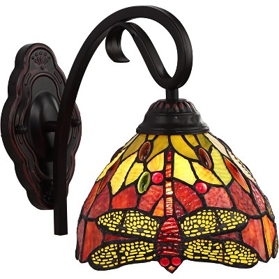 Chloe Lighting Empress Dragonfly Tiffany-Style Dark Bronze 1 Light Wall Sconce 8 Inch Wide