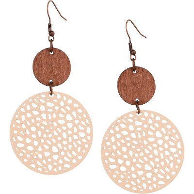 SmallRig Bohemian Hollow Cut-Out Wood Leather Dangle Drop Earrings, Boho Chic Hippie Statement Jewelry Gift for Women