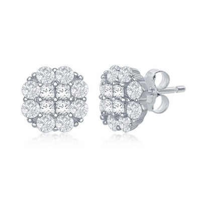 Bella Silver Sterling Silver Flower Design CZ Stud Earrings - Silver