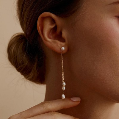 Dainty Pearl Dangle Earrings for Women - Trendy 14K Gold Plated Pearl Drop Earring Wedding Jewelry Gift
