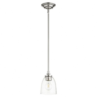 Quorum Lighting Lancaster 1-Light Pendant, Satin Nickel, Glass, 5W x 8.25H, Stem Hanging, Dry Rated