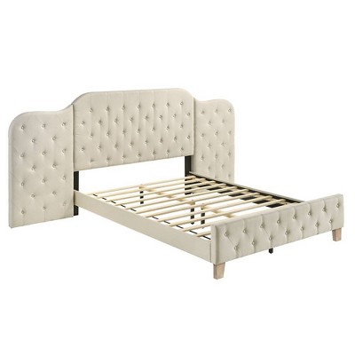 HomeRoots Beige Tufted Linen Queen Bed Frame