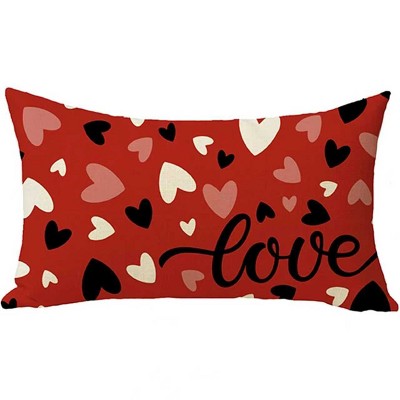 Lomsoe 1pc Valentines Linen Pillow Covers Valentines Day Decor Red Love Heart Anniversary Wedding Lumbar Throw Pillowcase for Couch.