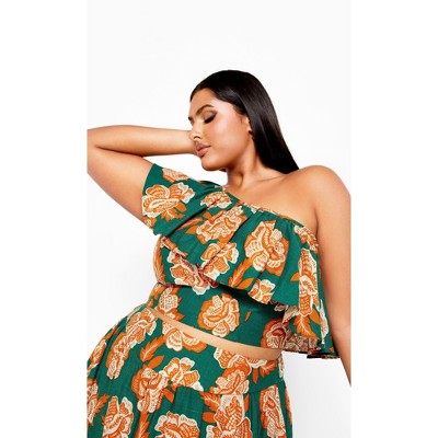 Women's Plus Size Tully Border Top - green | CITY CHIC