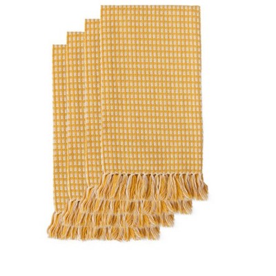Lintex Linens Homespun 100% Cotton Napkin With Checked Pattern And Fringed Edges - Set of 4