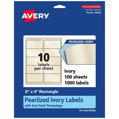 Avery Pearlized Ivory Square Labels with Sure Feed Technology, 4" x 4"