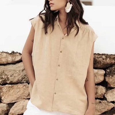- womens linen collared button down