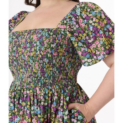 Unique Vintage Women's Plus Smocked Bodice Midi Dress