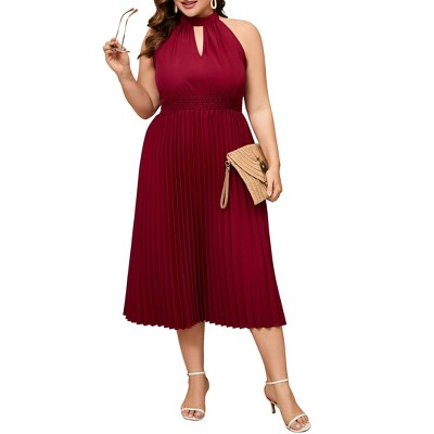 Plus Size Shimmer Pleated V-Neck Midi Dress - 24seven Comfort Apparel™