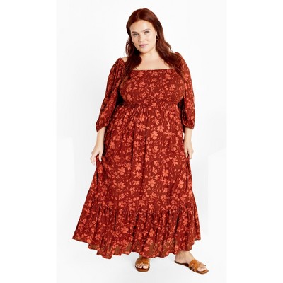 Women's Plus Size Kaylee Print Maxi Dress - rust | CITY CHIC