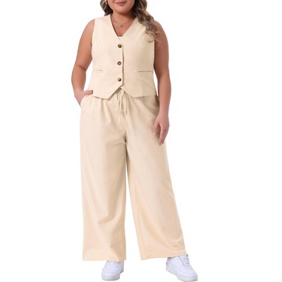 Women's Plus Size Lined Button Down Casual Work Crop Sleeveless Blazer Suit Vest - Agnes Orinda