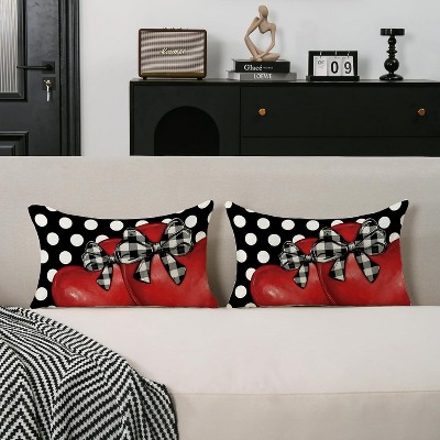 Lomsoe 1pc Linen Valentine Pillow Covers Buffalo Plaid Polka Dots Red Heart Pillow Cases Wedding Anniversary Decorative Cushion Cases.