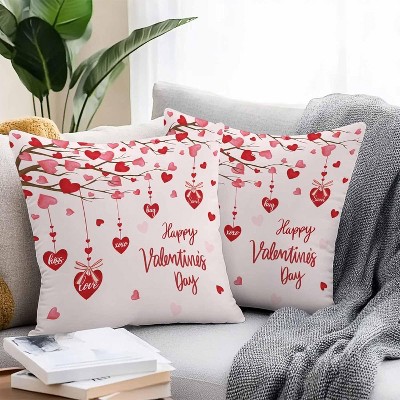 Lomsoe 1pc Linen Valentine's Day Envelope Throw Pillow Cover, Red Heart White Anniversary Wedding Cushion Case Decoration for Sofa Couch.