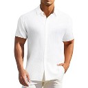 INSPIRE CHIC Men's Plain Linen Chest Pocket Short Sleeve Contrast Color Collar Shirts